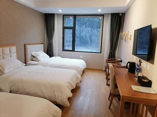 酒店简介 酒店位于四姑娘山景区镇上。距离长坪沟景区一公里左右,到双桥沟景区3公里左右,出行非常方便。本店有免费停车场地但不负责看管及承担相关责任,电梯,部分房间有地暖有制氧机。24小时热水。部分房间带有浴缸。大部分房间都可观山景,冬季下雪或秋季看满山五彩缤纷的秋景都是很不错的。五楼提供有喝茶休闲场地。有健身器材可免费使用。还有书吧,大朋友小朋友都可徜徉在书中的世界。也提供独立麻将房收费使用。提供烤羊,歌舞晚会,团建,大型宴席活动等。也有独立会议室场地,有投影仪和展板。可供几十人会议使用。一楼有专门的大场地餐厅300多平米,有早中晚餐可供应,可供团队及自驾游客人用餐。酒店位于四姑娘山景区镇上。距离长坪沟景区一公里左右,到双桥沟景区3公里左右,出行非常方便。本店有免费停车场地但不负责看管及承担相关责任,电梯,部分房间有地暖有制氧机。24小时热水。部分房间带有浴缸。大部分房间都可观山景,冬季下雪或秋季看满山五彩缤纷的秋景都是很不错的。五楼提供有喝茶休闲场地。有健身器材可免费使用。还有书吧,大朋友小朋友都可徜徉在书中的世界。也提供独立麻将房收费使用。提供烤羊,歌舞晚会,团建,大型宴席活动等。也有独立会议室场地,有投影仪和展板。可供几十人会议使用。一楼有专门的大场地餐厅300多平米,有早中晚餐可供应,可供团队及自驾游客人用餐。