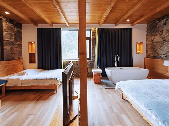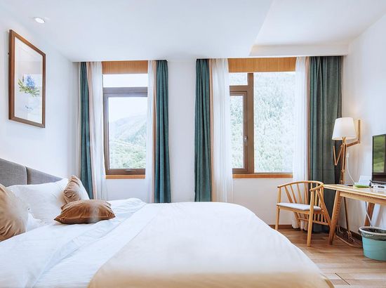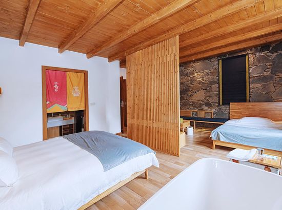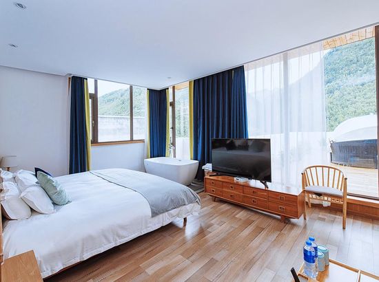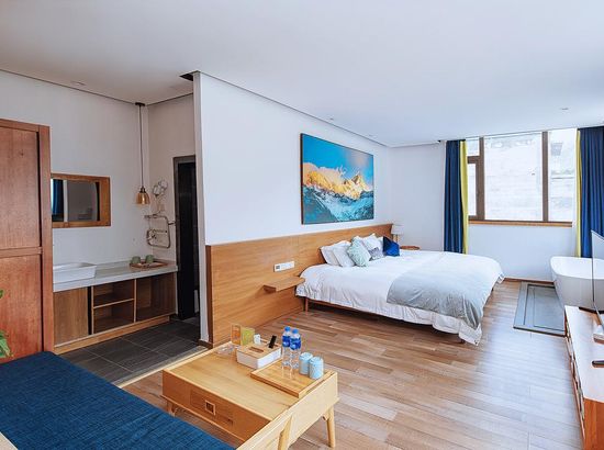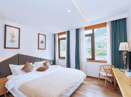 酒店简介 四姑娘山吾野·吾家客栈位于四姑娘山镇中央区域,这里依山而建,相对于镇上的平均3200米的海拔来说,海拔较低,只有3080米,可以帮助你更好的适应海拔。四姑娘山吾野·吾家客栈配套了超市、餐厅、酒吧及停车场,拥有3个大堂公共区域,可以满足20至50人不同类型聚会、会务、培训需求。客栈风格古朴别致、融合藏式元素建筑设计,定位户外主题客栈,为热爱户外旅行的小伙伴儿们专属打造。 从客房到大空间,全部房间每日严格消毒,客房用品采用全实木家具、九牧品牌溶具,并配备32寸液晶、电热毯、无线WIFI等一应俱全。再选上好看的花盆种上胖乎乎的多肉,不同品种的野花,面朝向山,一片穿暖花开的景象,打造温馨品质的入住体验。 客栈还设计了一间太阳可以从早晒到晚的阳光房,拿上一本书,在阳光的照应下,一切都那么和谐,只有自己是唐突外来者。这里还可提供户外装备租赁、登山马匹、向导服务,团队会务、拓展等全方位户外旅行支持,期待你们四姑娘山吾野·吾家客栈位于四姑娘山镇中央区域,这里依山而建,相对于镇上的平均3200米的海拔来说,海拔较低,只有3080米,可以帮助你更好的适应海拔。四姑娘山吾野·吾家客栈配套了超市、餐厅、酒吧及停车场,拥有3个大堂公共区域,可以满足20至50人不同类型聚会、会务、培训需求。客栈风格古朴别致、融合藏式元素建筑设计,定位户外主题客栈,为热爱户外旅行的小伙伴儿们专属打造。 从客房到大空间,全部房间每日严格消毒,客房用品采用全实木家具、九牧品牌溶具,并配备32寸液晶、电热毯、无线WIFI等一应俱全。再选上好看的花盆种上胖乎乎的多肉,不同品种的野花,面朝向山,一片穿暖花开的景象,打造温馨品质的入住体验。 客栈还设计了一间太阳可以从早晒到晚的阳光房,拿上一本书,在阳光的照应下,一切都那么和谐,只有自己是唐突外来者。这里还可提供户外装备租赁、登山马匹、向导服务,团队会务、拓展等全方位户外旅行支持,期待你们
