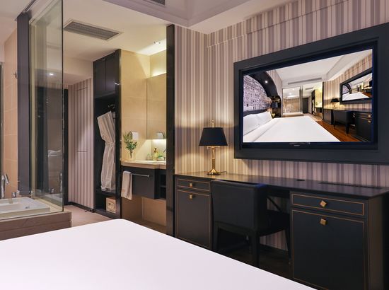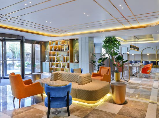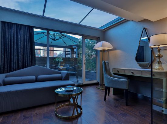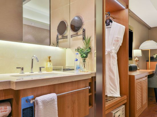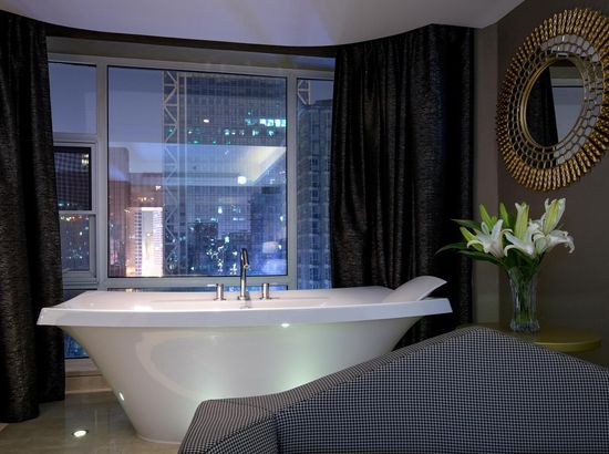酒店简介 酒店位于朝阳区CBD国贸商圈核心区域,毗邻LG双子座大厦、国贸中心、银座、秀水购物区、赛特、soho现代城等地;距天安门、故宫首都博物馆、天坛等众多著名历史文化古迹仅15分钟车程均可到达,交通十分便利,酒店是由美国著名设计师Amy亲自打造,部分客房浴缸置于落地窗前,部分客房有带阳伞的大露台。酒店客房全部配备科勒浴缸和洁具、LG42寸液晶彩电,客房音响系统支持Iphone、ipod和笔记本,并可与电视直接相连,房间全部可无线上网,客房隔音系统由清华声学所设计,保证安静睡眠。酒店位于朝阳区CBD国贸商圈核心区域,毗邻LG双子座大厦、国贸中心、银座、秀水购物区、赛特、soho现代城等地;距天安门、故宫首都博物馆、天坛等众多著名历史文化古迹仅15分钟车程均可到达,交通十分便利,酒店是由美国著名设计师Amy亲自打造,部分客房浴缸置于落地窗前,部分客房有带阳伞的大露台。酒店客房全部配备科勒浴缸和洁具、LG42寸液晶彩电,客房音响系统支持Iphone、ipod和笔记本,并可与电视直接相连,房间全部可无线上网,客房隔音系统由清华声学所设计,保证安静睡眠。