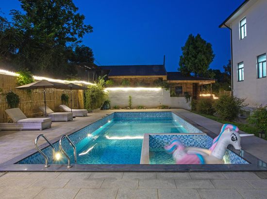 酒店简介 安吉良村23民宿位于天子湖镇良村村升村自然村,周边有中南百草原、浙江省自然博物馆、欢乐风暴等。前院大草坪,侧院儿童游乐区,后院大泳池和小花园。安吉良村23民宿位于天子湖镇良村村升村自然村,周边有中南百草原、浙江省自然博物馆、欢乐风暴等。前院大草坪,侧院儿童游乐区,后院大泳池和小花园。